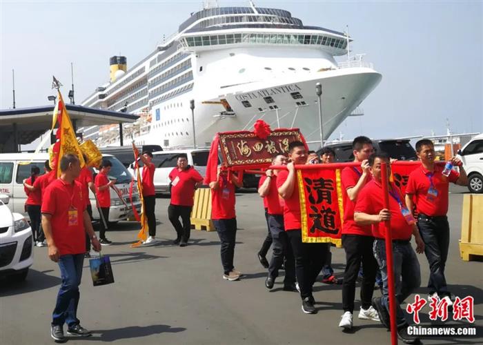 2023年3月17日,台湾中华道教联合总会名誉总会长徐文仅、台中永庆宫主任委员郭永富等台湾5家宫庙机构的代表一行,前来“妈祖故乡”福建省莆田市湄洲岛拜祭妈祖。随着新冠疫情阴霾的散去,今年湄洲岛上台胞朝圣热又兴起。