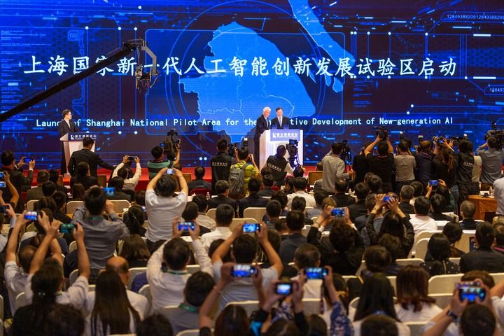 在上海举行的2019浦江创新论坛全体大会上,科技部与上海市政府共同启动上海国家新一代人工智能创新发展试验区建设(2019年5月25日摄)。新华社发