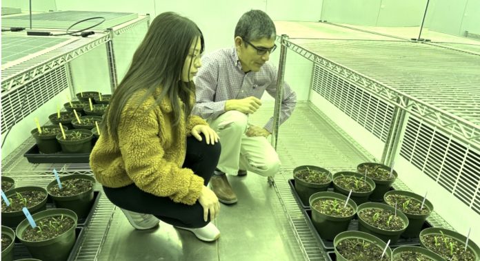 土壤科学家Guillermo Hernandez和来自秘鲁的研究实习生Camila Quiroz正在研究在太阳能板下种植农作物,以改善城市和农场的空间利用。