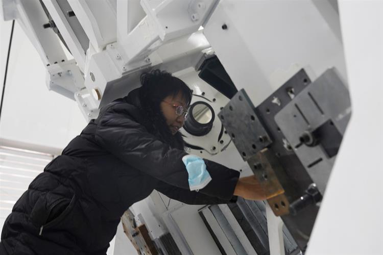 4月8日,中国科学院国家天文台怀柔太阳观测基地总工程师王东光在AIMS圆顶内工作。新华社记者 陈杰 摄
