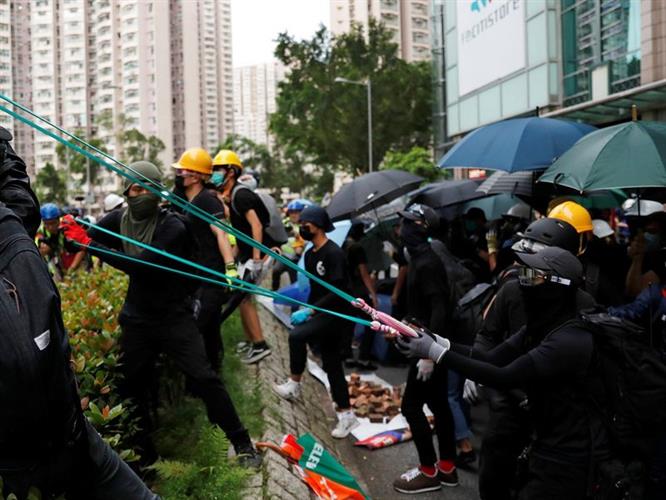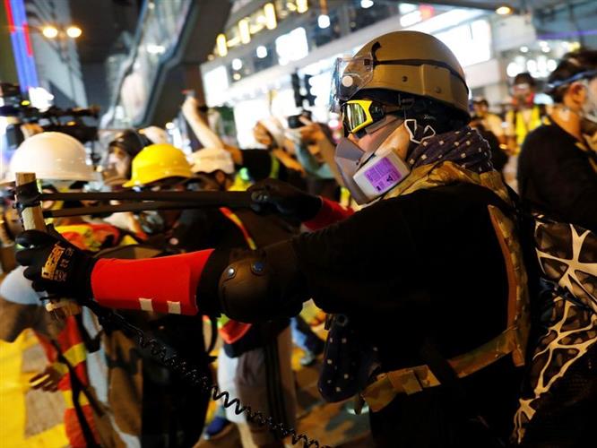 近距离观察香港正在上演的街头运动就能轻易发现,参加游行示威的人们绝非“手无寸铁”,而是越来越“全副武装”。