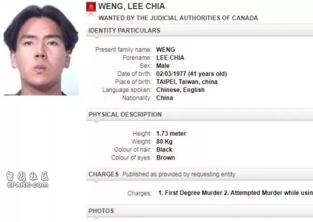 加拿大警方对翁瑞凯(当时叫翁立嘉Weng Lee Chia)的通缉令