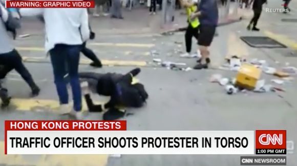 美国CNN同样以相似内容称香港交警朝示威者开枪在其网站上进行滚动播放
