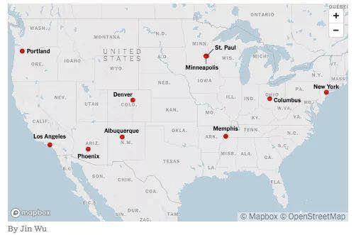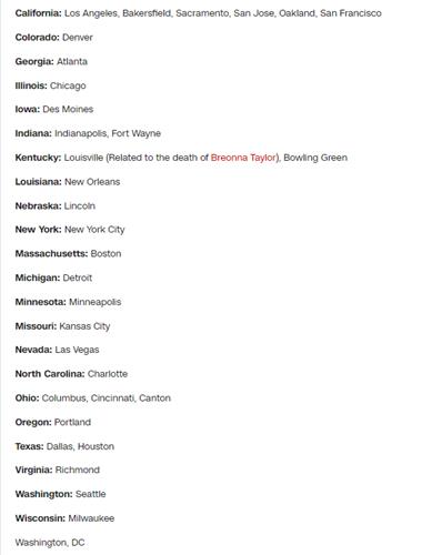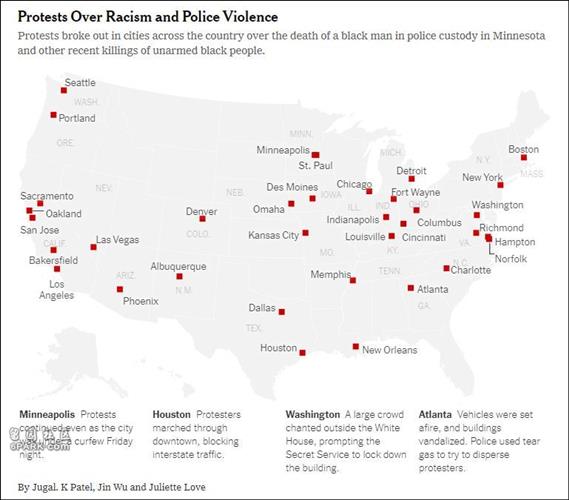 截至目前,全美爆发抗议的城市 图源:纽约时报