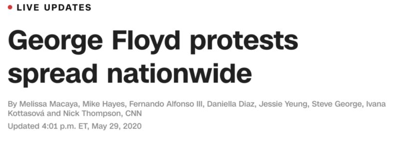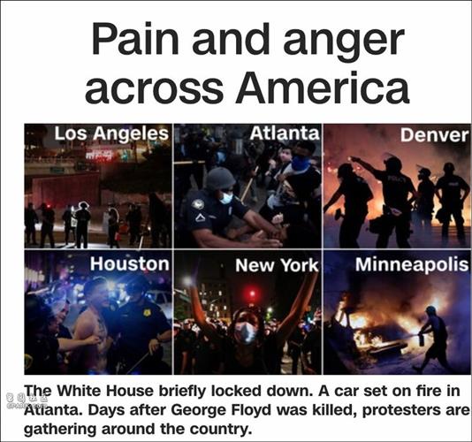 CNN最新消息,位于华盛顿特区的白宫因为抗议示威者而临时关闭。位于亚特兰大的CNN也难逃过情绪激动的抗议者
