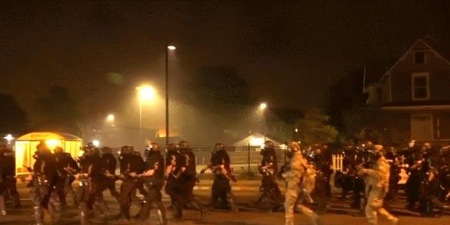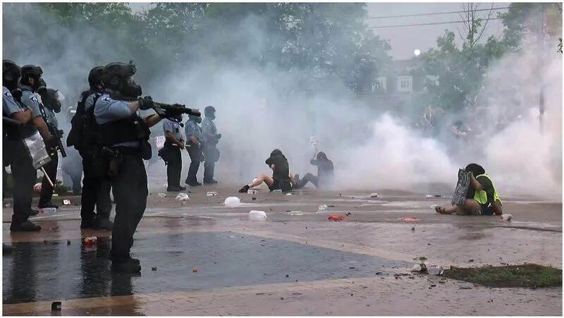 大约凌晨3点30分,警察向人群发出了两次警告,然后一排手持盾牌的警察向高呼“黑人的生命很重要”(black lives matter)的人群逼近。