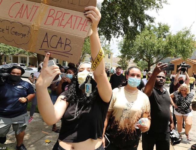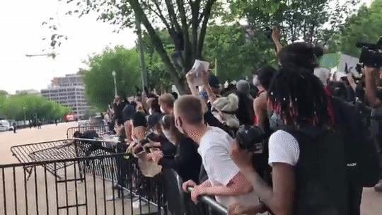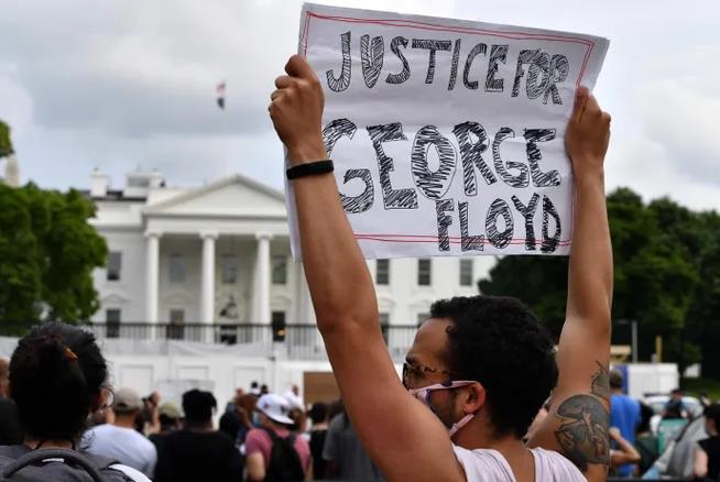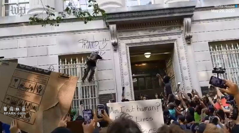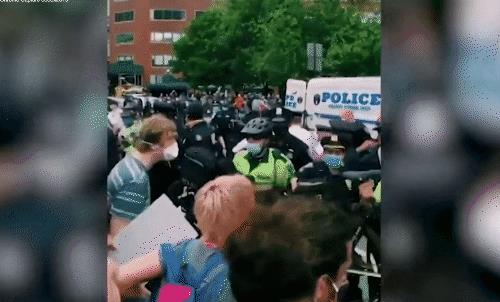 在美国首都华盛顿,民众高举标语,在白宫外发出怒吼抗议,之后警察到场驱散,在场民众和警察爆发激烈冲突。