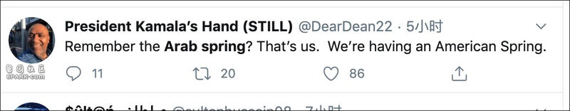 不少网友直截了当点出,这不是“阿拉伯之春”,这是“美利坚合众国之春”。与此同时,“特朗普原地辞职”也冲上了推特热搜。