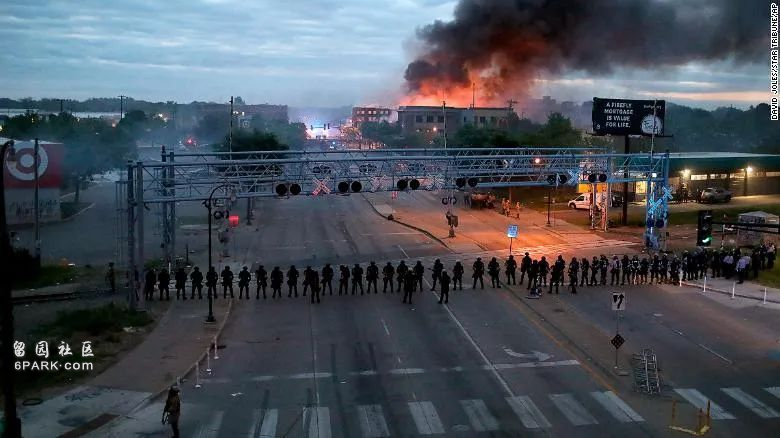 示威最激烈的明尼苏达州,州长说,“”明尼阿波利斯的局势已不再与乔治·弗洛伊德被谋杀有关,白人主义至上分子和贩毒集团干预加剧混乱。目前已经全面部署本州国民警卫队,必要时协助控制局势。