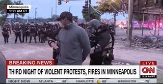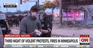 29日凌晨,美国明尼苏达州明尼阿波利斯市示威者在街头示威时,CNN3名工作人员在现场进行直播时被警察逮捕。CNN称,在被捕前,他们曾向警方表明自己身份。