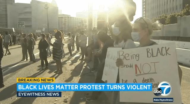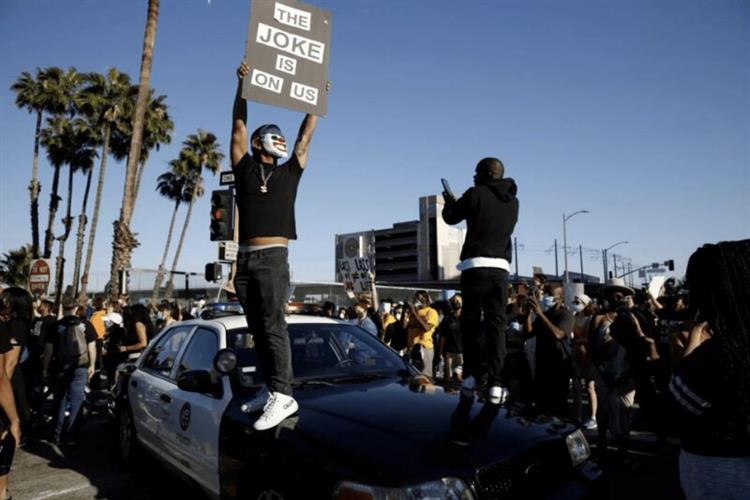 5月27日,洛杉矶当地爆发抗议游行,数百人参与其中。