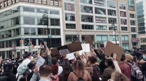 5月28日,一批抗议者丝毫不顾“居家隔离令”的限制,冲向了纽约Union Square。