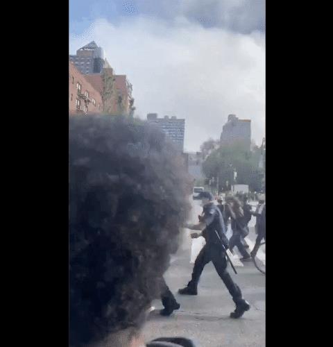 纽约警方在执法过程中发生了肢体碰撞。民众的怒气到达燃点,冲突一触即发。