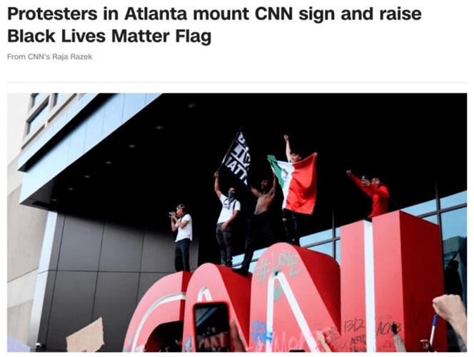 29日,在美国亚特兰大,抗议活动出现升级。CNN总部大楼遭示威者围堵。视频显示,部分示威者站在总部大楼前的CNN标志上,挥舞着印有“黑人的生命也是命”(Black Lives Matter)的旗帜,另外一些示威者则在CNN标志上用喷漆涂鸦。