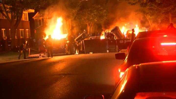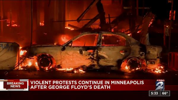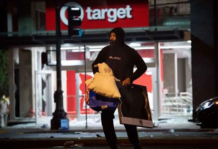 明尼苏达州最大城市Minneapolis爆发暴力行为,街头放火、打砸抢烧、洗劫商店。