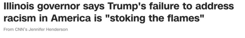 甩锅还是懂王厉害,毕竟特朗普口头禅之一就是,“没人比我更懂了”。在每日新闻发布会上,伊利诺伊州州长对记者说,特朗普上任以来,并没有缓解美国的种族问题,反而是火上浇油