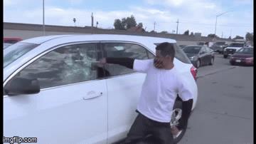 然而,更可怕的是,示威者并没打算放过车主! 一位男性示威者紧接着上来拼命砸驾驶窗!