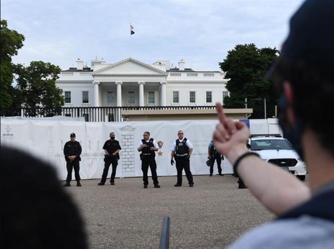 受华盛顿抗议活动影响,白宫外有大批警察防守,还放置了不少路障。其间还有示威者试图拆除路障,现场警员与示威者发生冲突。