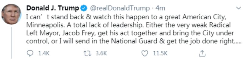 “抢劫开始之时,就是军队扣动扳机之时。”对于美国威斯康辛州基诺沙的这起相似的警方涉嫌暴力执法案件,特朗普目前并没有作出相应的表态。反倒是特朗普的小儿子在社交媒体平台上转发了这样一则意味深长的评论:
