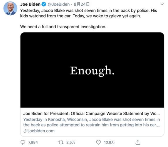 拜登甚至放话,如果2020年他当选了,他会给黑人赔偿。让黑人群体住上好的公寓,让他们不再流离失所;让黑人群体接受好的教育,让他们不再被歧视。而弗洛伊德事件后的特朗普,却将抗议示威人群公然称之为“暴徒”。