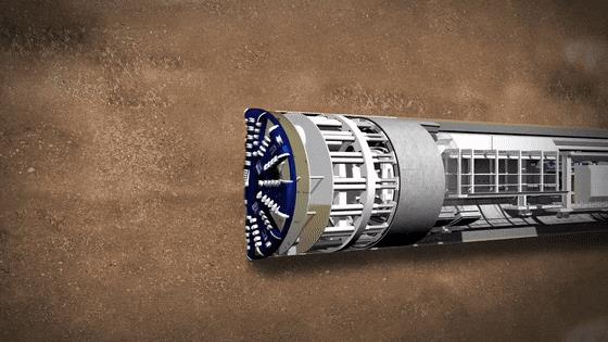 别看它长得丑,它可号称“工程机械之王”,是世界上最先进的隧道掘进机器。它的“血盆大口”,是一个圆形刀盘,在千斤顶的推力下,刀盘会掘开土层,再通过壳内错综复杂的机械长廊,把刀盘削下的土排出去。盾构机一面挖掘,工人一面在隧道内部堆砌砖头,所以盾构机开过,隧道也就铺好了。