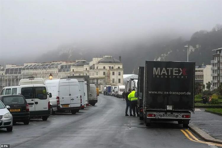 多佛码头上也停满了卡车,这些卡车已经在这里守候了超过24小时,司机们希望法国尽快开放边界,然后他们就能马上通关前行。
