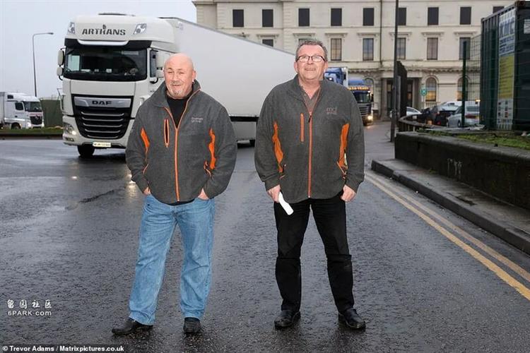 有的人在车上看着电视或收听广播来打发时间,有的人幸好还带了电热壶,可以烧开水来给自己驱寒。他们有的人从周日就已经待在这里,无法睡个安稳觉,也没办法洗澡,十分无奈。来自威尔士的卡车司机Graham Tegg(左)和Steve Coventry(右)就是其中滞留在多佛港口的司机,