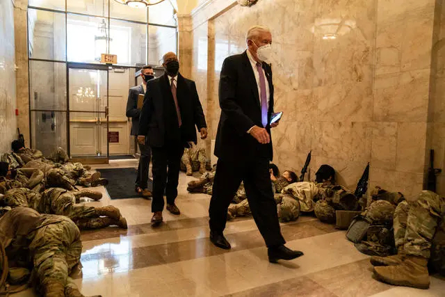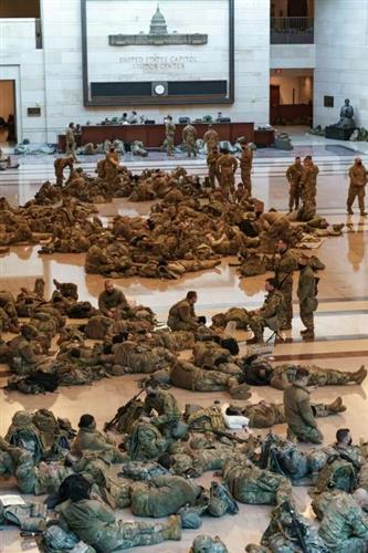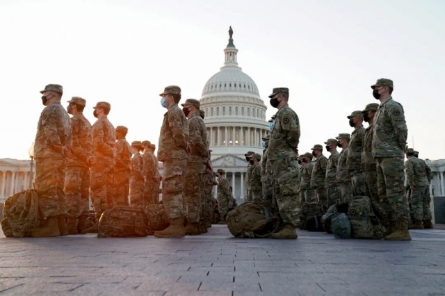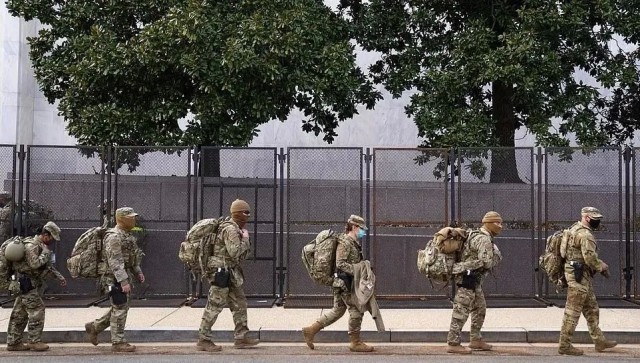 1月11日,美国政府派出1.5万名美国大兵进驻华盛顿。1月13日,再次增派5000兵力。1月14日,国防部再次提高安保级别,增至2.1万人。