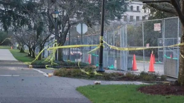 国会大厦西侧外本没有围栏,国会山事件后,加设了2.4米高围栏。