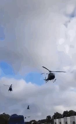 空中,一架又一架军用直升机呼啸而过,