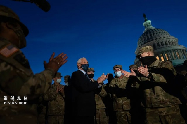 彭斯亲自现身国会大厦给已经抵达“前线”的国民警卫队打气,