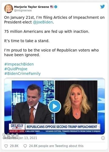 美国女议员:拜登上台第一天就提交弹劾文件