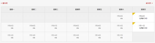 让我们一起来看看近期各个航空公司的票价情况。以下均为经济舱单程票价(加元)