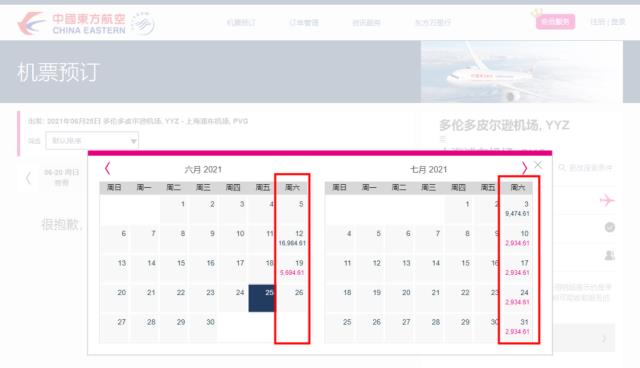 东航官网显示,6月多伦多-上海的票价最高飙至近$5,600(2.8万+),7月恢复到$3,000左右。