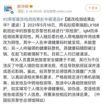 中国大使馆紧急发文!伪造核酸检测结果入境直接遣返!