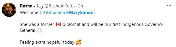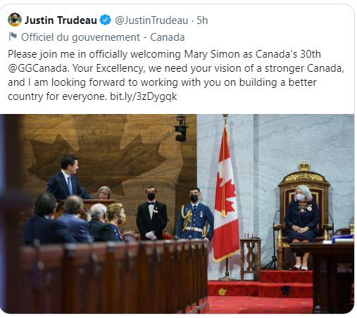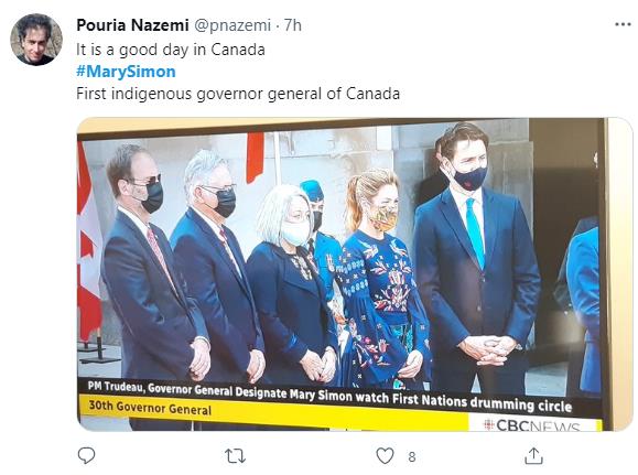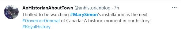 许多加拿大人观看了今天总督就职仪式的直播,并在推特上发表正面的评论:
