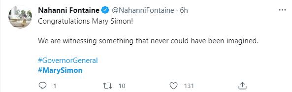 报道称,原住民领袖,尤其是因纽特人社区的代表对西蒙获任命总督表示赞赏。