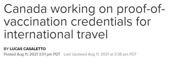 加拿大政府此前也宣布,从今年秋天开始,打过两针疫苗的加拿大公民、永久居民或临时居留者将可以在出国旅行时使用数码疫苗护照。