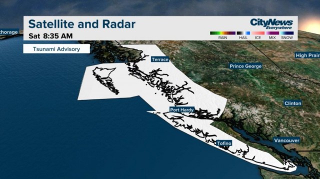 该中心说,今天上午发布的警报有四个区域受到影响。A区覆盖BC省北海岸,包括Haida Gwaii,而B区覆盖温哥华岛中部和东北部海岸,其中包括Kitimat、Bella Coola和Port Hardy。该预警也包括温哥华岛的外西海岸,从Cape Scott到Port Renfrew,被称为C区,以及D区:从Jordan River到Greater Victoria,横跨Juan de Fuca海峡,包括Saanich半岛。