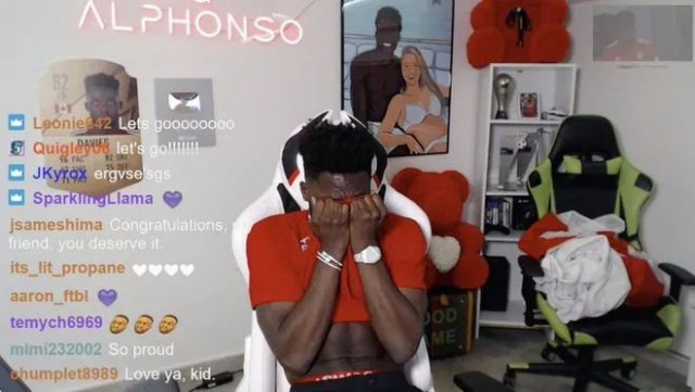 有伤在身的阿方索-戴维斯无法为国出战,他在个人直播间与球迷们一起观赛。在终场哨响的一刹那,拜仁左闸泪崩。