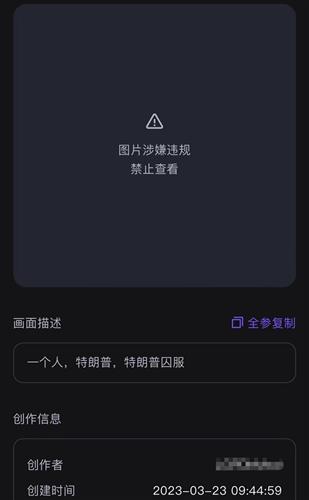 还有一些图片生成后会显示“图片涉嫌违规禁止查看”,这句话翻译一下就是“我有能力生成,但就是不让你看。”所以目前来看,AI生成堪比照片质量的图片并不存在技术问题,只是做了一些限制。