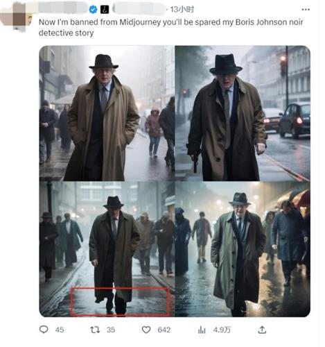 但实际上,这些都是AI合成图,据图片较早的发布者在海外社交平台称,仅仅是在一些AI绘图平台上输入了一句“AI如何看到唐纳德•特朗普被捕并坐在监狱里”。
