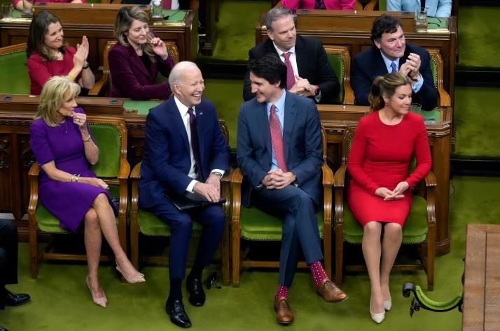 美国总统乔·拜登周五在下议院发表了慷慨激昂的讲话,称加拿大与美国的关系从未像现在这样牢固,同时呼吁建立更紧密的关系以应对我们时代的挑战。在数百名国会议员、参议员和政要的注视下,拜登站在议长席前说,加拿大人和美国人是“拥有一颗心”的“两个人”——不仅因地理和历史而联系在一起,而且因共同的民主价值观而联系在一起。