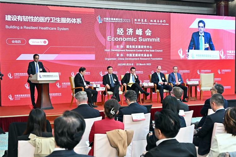 3月25日,中国发展高层论坛2023年年会经济峰会“建设有韧性的医疗卫生服务体系”分会场。新华社记者 李鑫 摄