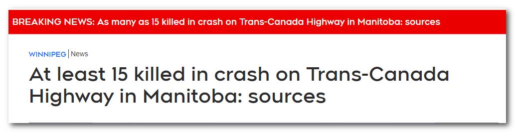 https://winnipeg.ctvnews.ca/at-least-15-killed-in-crash-on-trans-canada-highway-in-manitoba-sources-1.6442629 (加拿大都市网 图片:CTV视频截图)