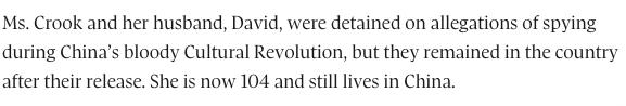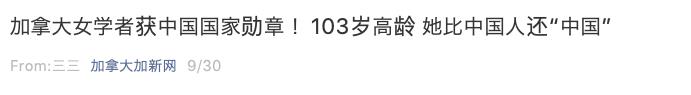 先来了解一下背景。事情起源于上月底,加拿大裔学者伊莎白·柯鲁克(Isabel Crook)获得了中国国家对外最高荣誉勋章——中华人民共和国“友谊勋章”。