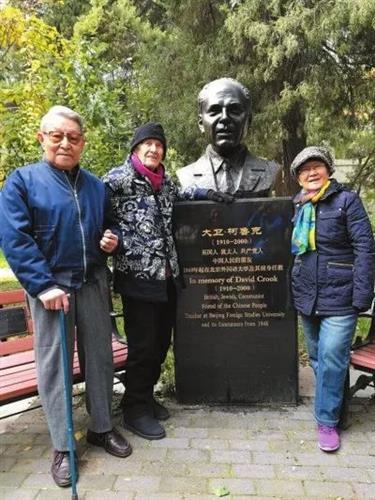 伊莎白与老朋友陈琳(左一)在柯鲁克铜像前