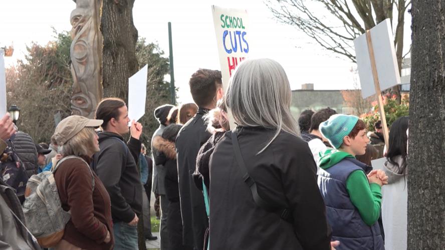温哥华教育局计划关闭一些特殊的学习计划,引发家长学生不满,周三晚上大约有超过 100 人聚集在温哥华教育局大楼外,抗议可能削减和关闭课程的提案。