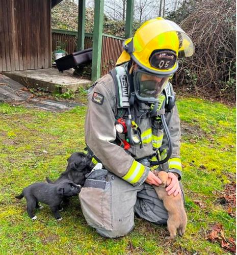 素里消防人员在周三(19日)早上的一场火灾中,救出7只小狗和牠们的妈妈。