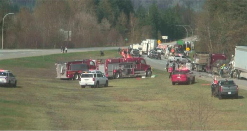 卑诗公路巡警于周二下午4时左右接报指,1号公路上发生3车相撞,涉事车辆包括3辆商用车,其中两辆运输卡车,事发地点在猎人溪路(Hunter Creek Road)附近的东行车道上。